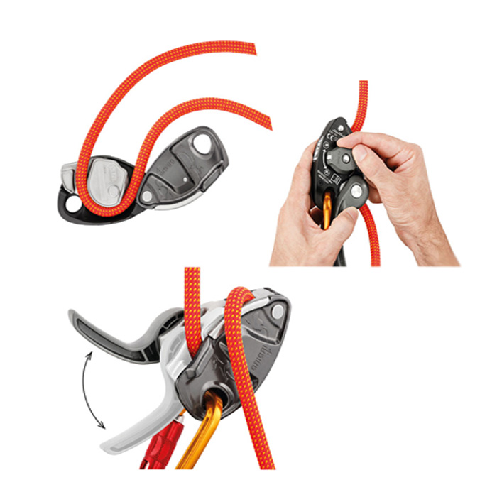 در صورتی که دستگیره را به یکباره برای طناب دهی بکشید، ابزار قفل و از سقوط جلوگیری می کند. - دارای دو حالت استفاده حمایت از پایین (صعود سر طناب) و حمایت از بالا (حمایت نفر دوم)